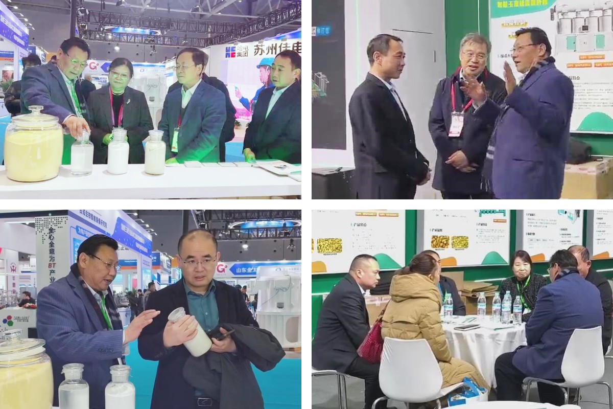 第14屆國(guó)際生物發(fā)酵產(chǎn)品與技術(shù)裝備展覽會(huì)于3月3日在濟(jì)南黃河國(guó)際會(huì)展中心盛大開幕。中國(guó)生物發(fā)酵產(chǎn)業(yè)協(xié)會(huì)理事長(zhǎng)于學(xué)軍,中國(guó)生物發(fā)酵產(chǎn)業(yè)協(xié)會(huì)副理事長(zhǎng)兼秘書長(zhǎng)于王潔,中國(guó)生物發(fā)酵產(chǎn)業(yè)協(xié)會(huì)副理事長(zhǎng)馮志合一行聚焦華豫萬通展臺(tái),對(duì)華豫萬通創(chuàng)新研發(fā)的玉米干法制糖新工藝進(jìn)行了考察與指導(dǎo),并與華豫萬通董事長(zhǎng)沈鈺現(xiàn)及營(yíng)銷總監(jiān)魏公明進(jìn)行了深入地技術(shù)交流和行業(yè)前景展望。