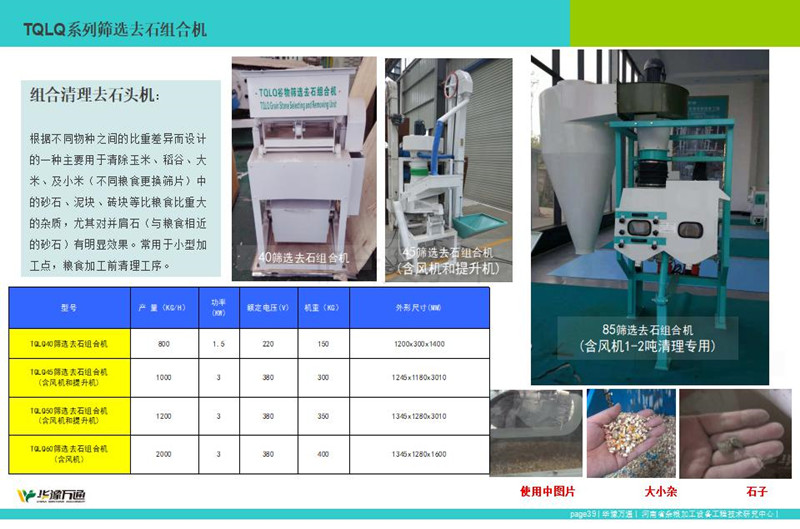 華豫萬通生產(chǎn)的TQLS系列組合清理去石機(jī),該系列組合型清理去石機(jī)整合風(fēng)機(jī)、振動篩、去石機(jī)為一體的糧食清理設(shè)備,常應(yīng)用于糧食加工中清理去除大中小雜、石頭以及輕雜。其中TQLS-45型清理去石機(jī)常應(yīng)用1噸下糧食清理,而TQLS-85組合清理去石機(jī),精工制作常應(yīng)用于30噸左右糧食加工生產(chǎn)線的前段清理工序。