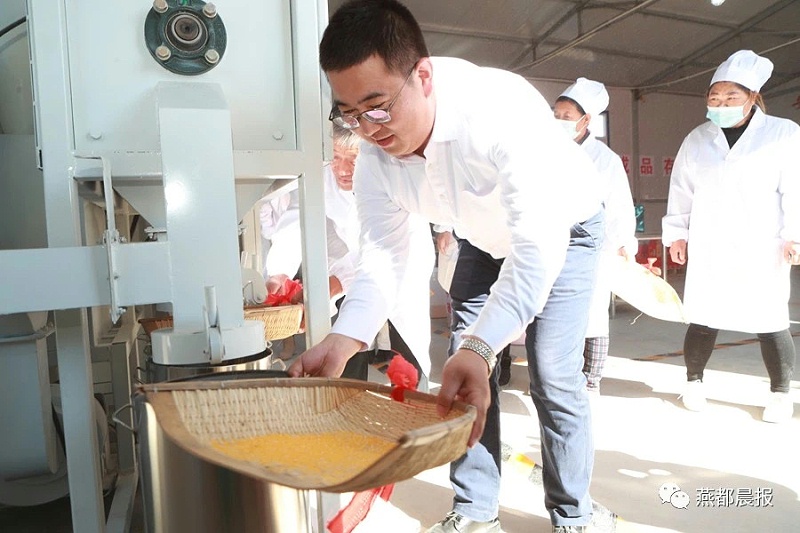 10月23日,艷陽高照。朝陽縣南雙廟鎮(zhèn)梨樹溝村像過年一樣熱鬧。隨著梨樹溝村書記殷海順激動地按下了玉米深加工設(shè)備的啟動鍵,便迎來了華錄集團等企業(yè)和社會人士助力銷售。該日產(chǎn)5噸玉米碴加工項目是為鞏固脫貧攻堅成果、發(fā)展壯大村集體經(jīng)濟而成立的,預(yù)計每年為梨樹村集體創(chuàng)收5萬元,用于幫扶貧困戶和村集體發(fā)展。該項目堅持以產(chǎn)業(yè)扶貧為主,以產(chǎn)業(yè) 鄉(xiāng)村振興,利用梨樹溝村及南雙廟鎮(zhèn)玉米資源開展玉米深加工項目。