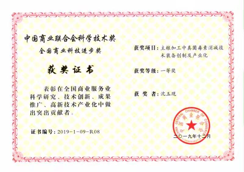 喜報(bào)傳來(lái)!在中國(guó)商業(yè)聯(lián)合會(huì)組織的2019年全國(guó)商業(yè)科技進(jìn)步獎(jiǎng)的評(píng)比中,魯山縣華豫萬(wàn)通工程技術(shù)有限公司的糧食真菌毒素消除技術(shù)裝備生產(chǎn)項(xiàng)目榮獲一等獎(jiǎng),這是對(duì)華豫萬(wàn)通多年來(lái)一直追求創(chuàng)新的一次積極肯定和極大的鼓勵(lì)。